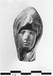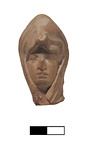 | Description: | Head of a female figurine with a veil framing the face over a pointed coiffure. The nose is chipped. The veil hangs in folds above the brow and is brought down on either side of the face so that it nearly meets below the chin. The upturned eyes have a saddened expression; the corners of the mouth turned down slightly. Traces of white paint. Solid; no evidence of mould. Buff clay with a lighter buff slip. Cf. Loeb (1916), I, 56. | |