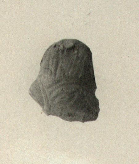 Fluted comb indicated over large eye; start of beak set off from head by double groove; neck feathers faintly indicated.