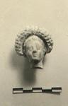 | Description: | First intepretation: woman 's head. Broken off at neck. Heavy halo-like wreath around head. Traces of white and pink paint on the wreath. | |