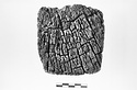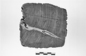Description:   Flat piece with raised edge, and four shallow oval depressions, each with a hole in the center.