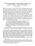 | Title: | Two Unpublished Inscriptions from the South Temple Area of Karanis | |